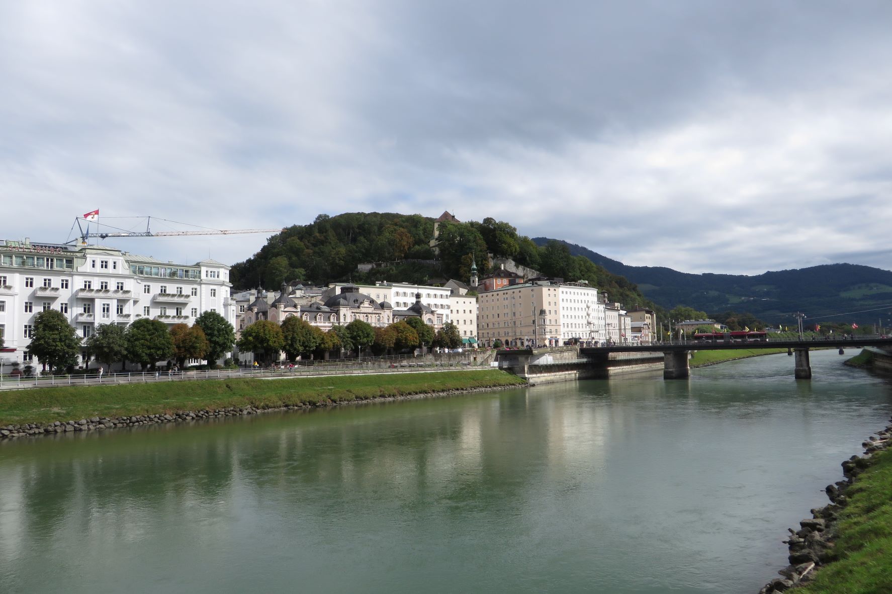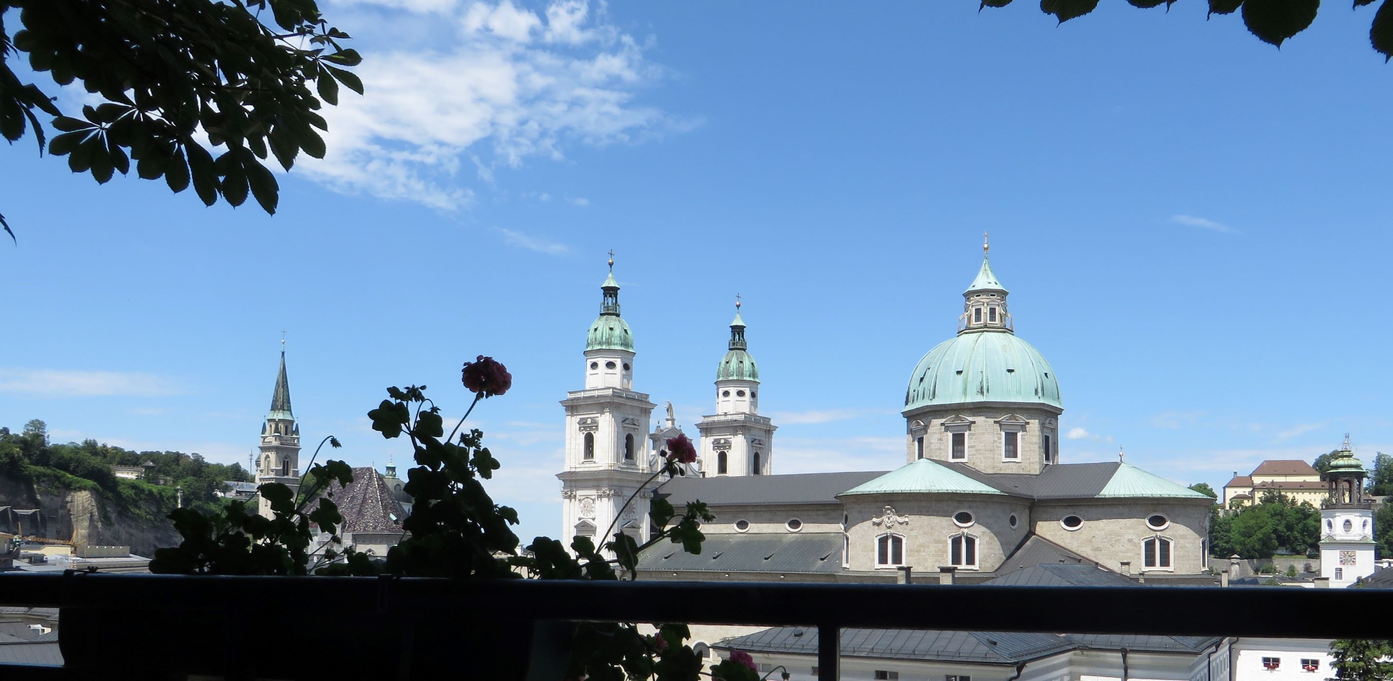 „Wie immer, wenn er heraufkam, wollte er den verschwenderisch pompösen Ausblick genießen. Er trat an die Mauer, atmete tief durch. Der Anblick war schier unbeschreiblich. Er schaute hinüber zum Mönchsberg. Dort dominierte das Prunkstück der gesamten Szenerie: die Festung. Ihr zu Füßen ruhte die Stadt mit Häusern, Kirchen, spektakulären Dachlandschaften. Dazwischen wand sich der Fluss, das Silberband der Salzach. Ein wahres Schmuckstück bot sich seinen Augen, ein Juwel zwischen den Stadtbergen.“