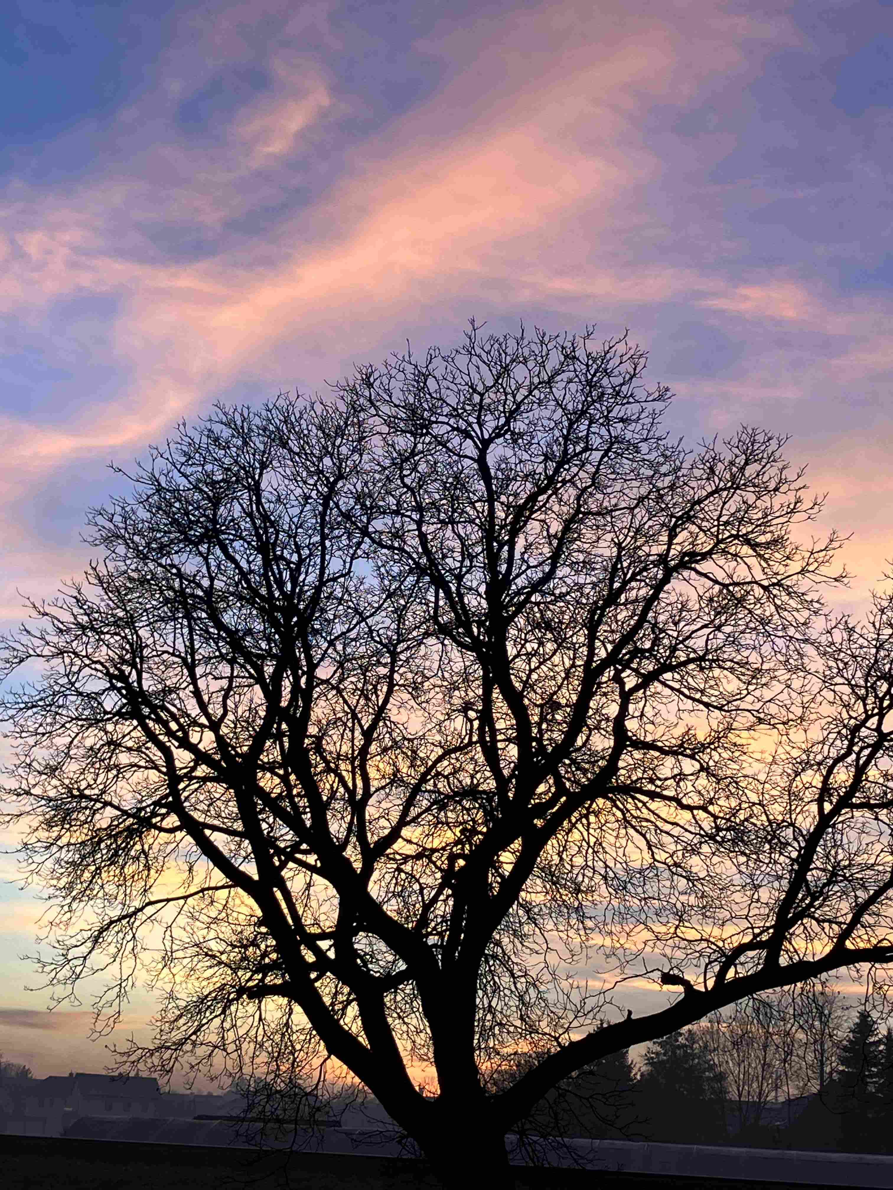 „(…) einer der etablierten Vor-Übernachtungsbäume der Stadt. Jeden Nachmittag im Winter strömen die Krähen auf diesem Baum zusammen, wo sie Radau machen, klatschen und lärmen. (…) Die Krähen hängen dort eine Weile rum, lärmen und machen Halligalli, bevor sie vielleicht weiterfliegen und noch einen anderen Vor-Übernachtungsbaum ausprobieren. Vielleicht fliegen sie dann wieder zurück zum ersten Baum, bevor sie eine endgültige Entscheidung darüber treffen, wo – und nicht zuletzt mit wem gemeinsam – sie die Nacht verbringen wollen. Wenn die Nacht hereinbricht, werden die Krähen ruhiger und die Schar fliegt ziemlich lautlos vom Vor-Übernachtungsbaum zum Übernachtungsbaum, wo sie dann alle schlafen.“